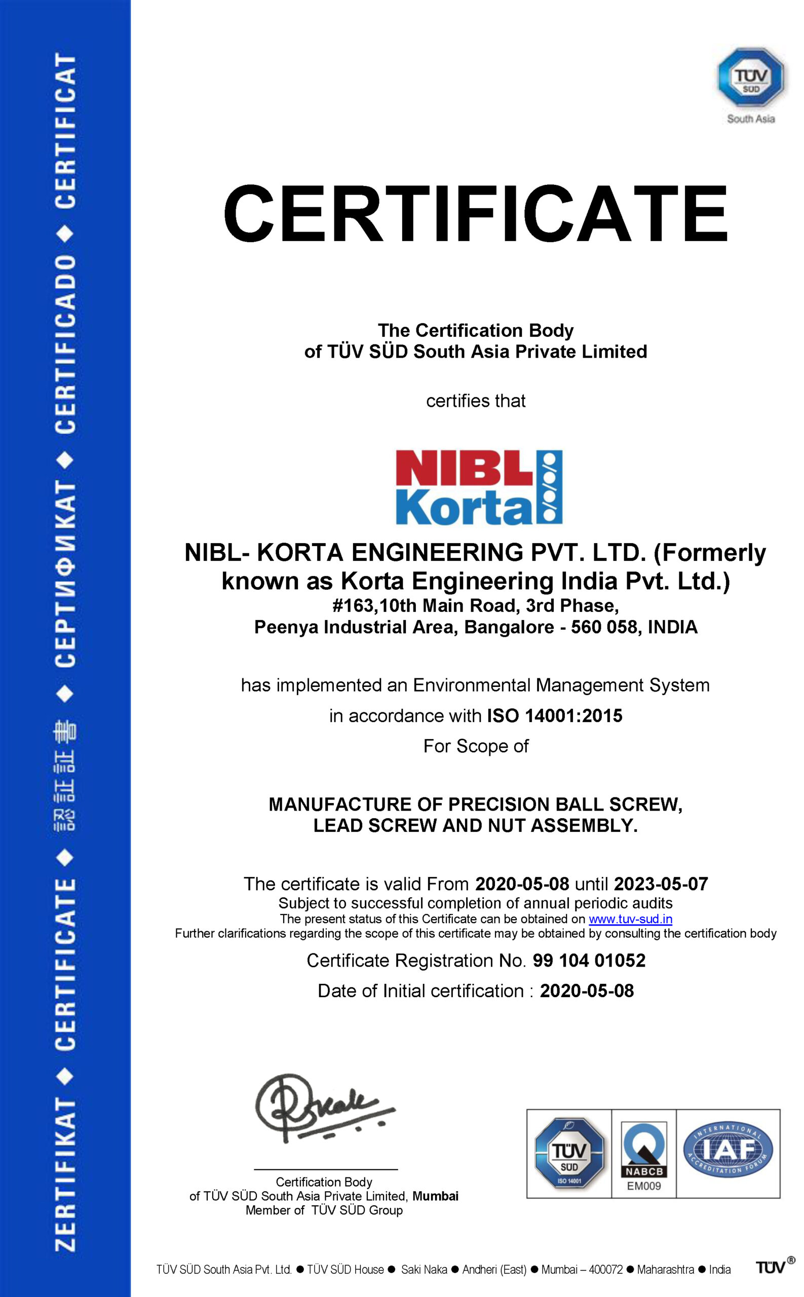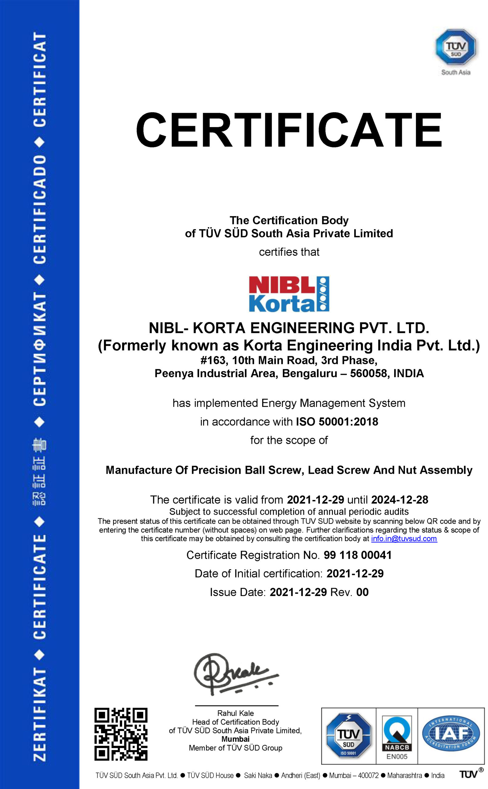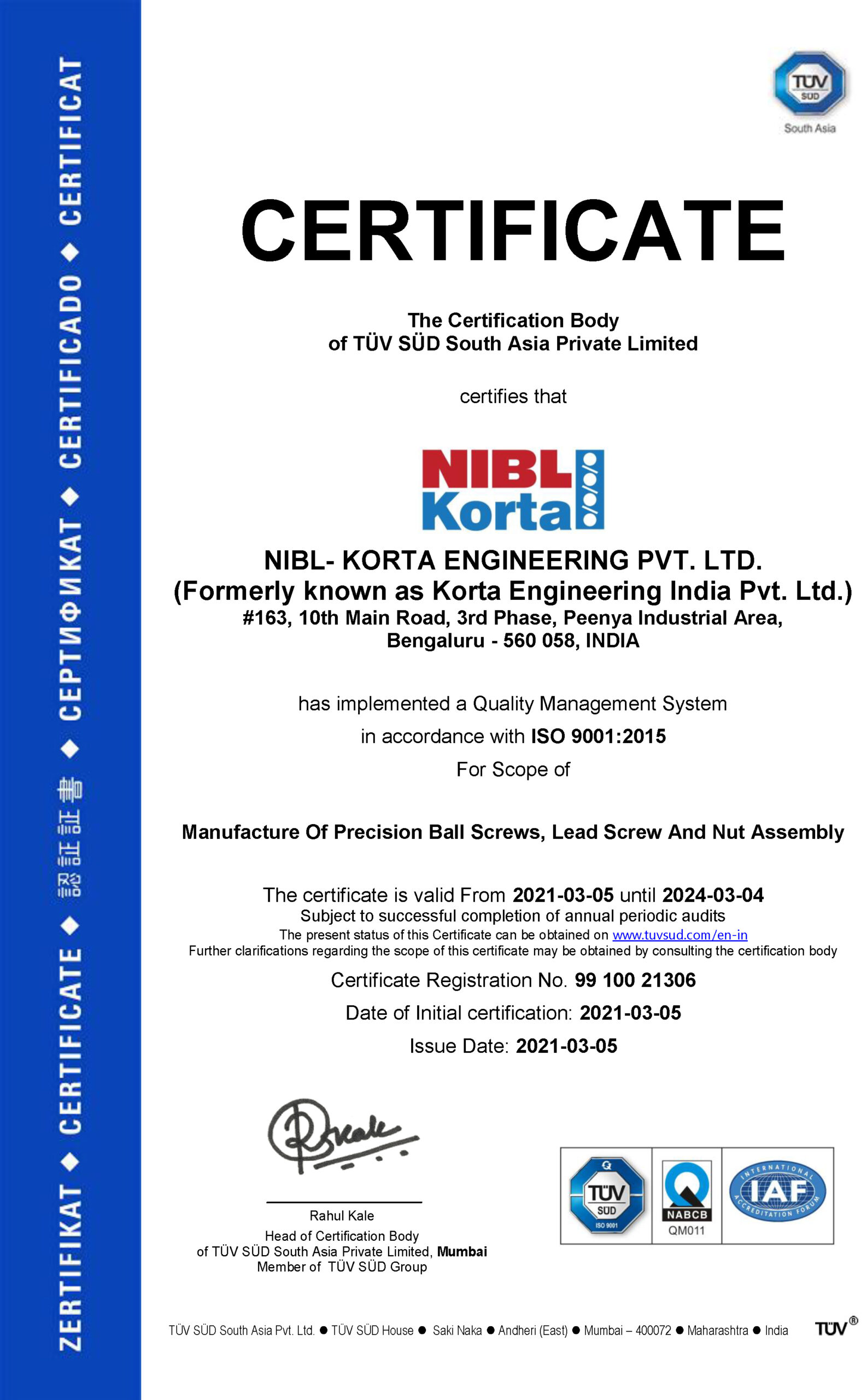 NIBL – Korta is located in the technology capital of India, Bengaluru. Established in September 2007, it caters to the burgeoning demand for precision engineering components such as Ball Screws. The company so far has made its presence felt across a wide cross section of over 150 engineering manufacturing goods industries in India and Overseas markets.